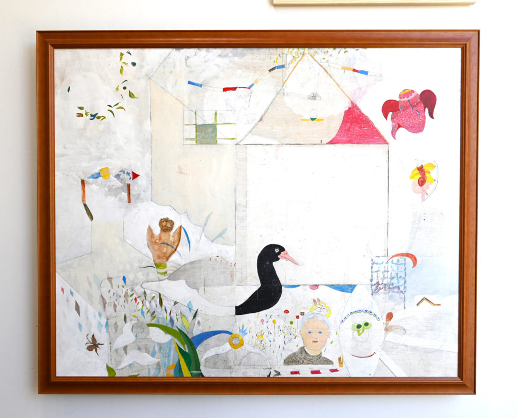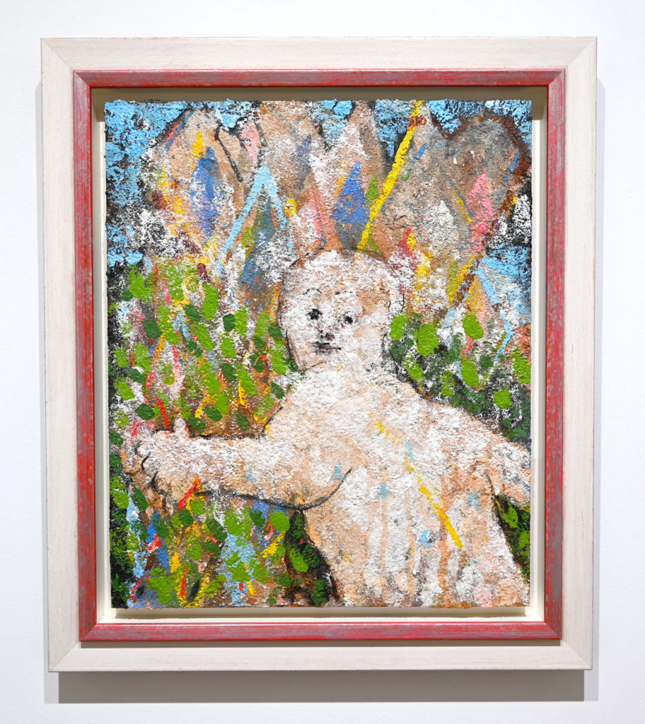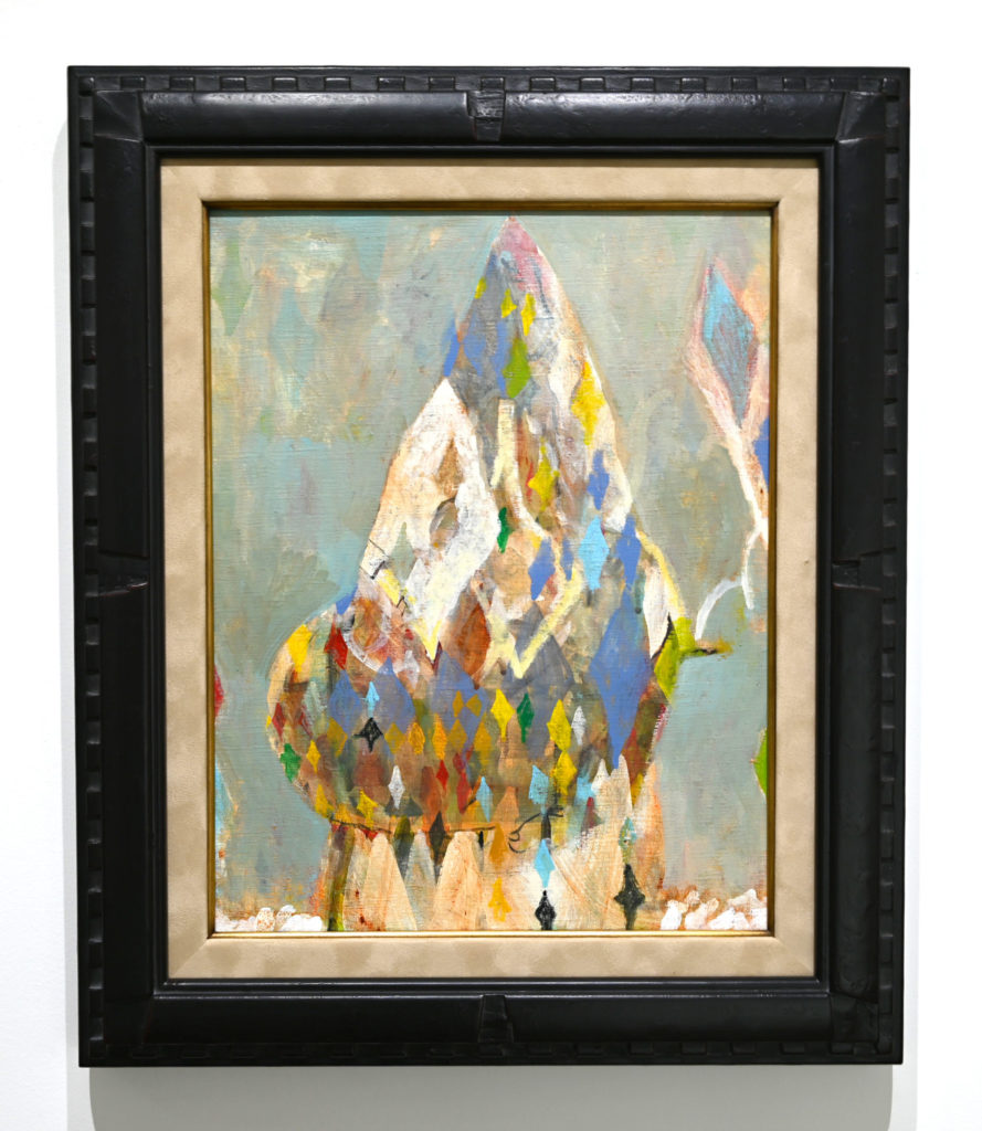東北の自然と文化に親しみ、作ることが身近にある環境で育まれてきた伊山桂の制作活動は多岐に渡ります。絵画では油彩やアクリル絵具のみならず、自ら探究した画材として卵殻も取り入れています。支持体もキャンバスや紙はもちろんのこと作業机にそのまま描いたり、家のような作品を制作し、その後それを展開して展示することもあります。その他、編み物、刺繍、ラジオ、地元紙への連載、今年に入ってからは店長として盛岡市に雑貨店兼ギャラリーを開店。その全てが、伊山桂が自分自身、人、景色、本など関わった全ての物に素直に向き合い、内面から湧き上がる何かを真摯に見つめ、即興的に時に何年も時間をかけ「作品」にしたものに他なりません。鑑賞者は、肩の力が抜けているからこそ見える物事の本質を感じ取ることでしょう。